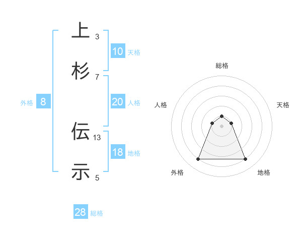 上杉 伝示さんの総格は28画の1点!