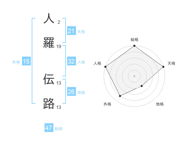 人羅 伝路さんの天格は21画の5点!