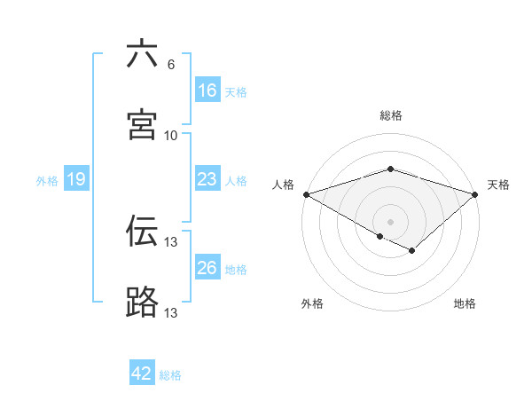 六宮 伝路さんの総格は42画の3点!