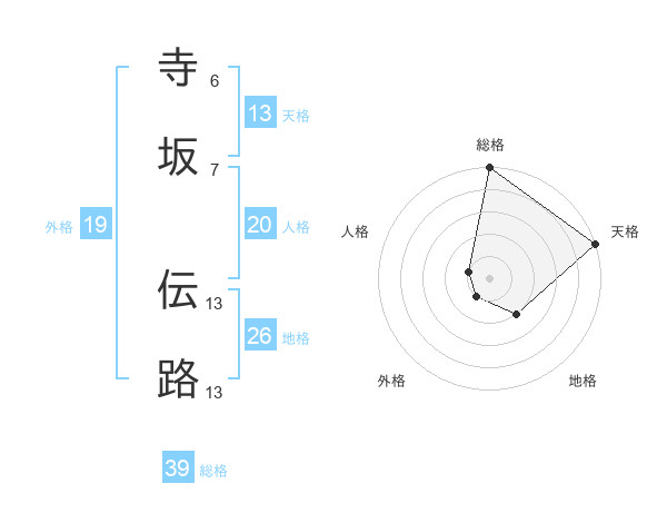 寺坂 伝路さんの総格は39画の5点!
