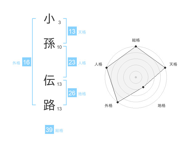 小孫 伝路さんの総格は39画の5点!
