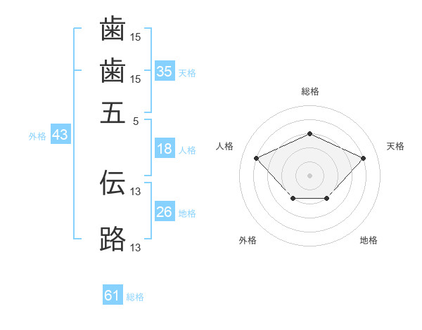 歯歯五 伝路さんを姓名の画数から五運を鑑定