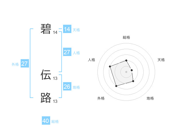 碧 伝路さんの外格は27画の3点!