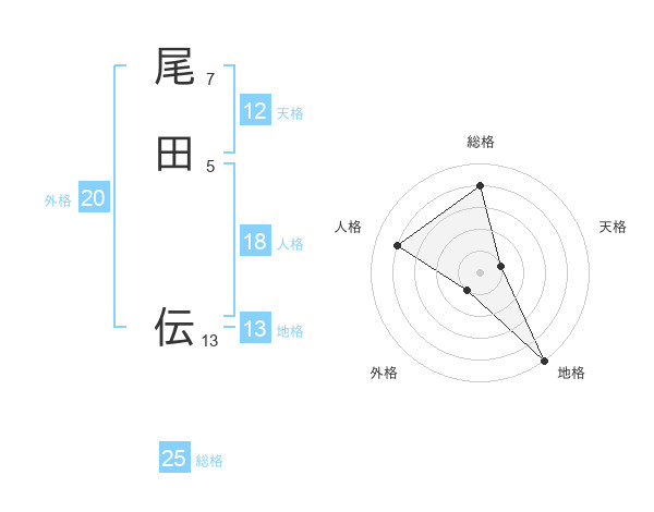 尾田 伝さんの天格は12画の1点!