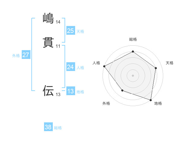 嶋貫 伝さんを姓名の画数から五運を鑑定