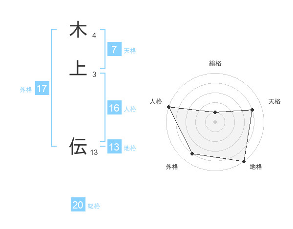 木上 伝さんの総格は20画の1点!