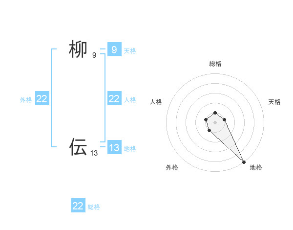 柳 伝さんの総格は22画の1点!