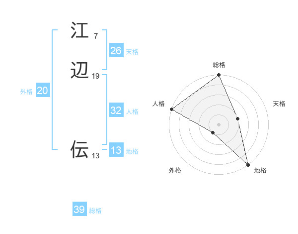 江辺 伝さんの総格は39画の5点!