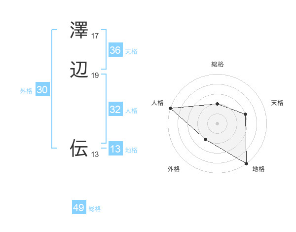 澤辺 伝さんの総格は49画の2点!