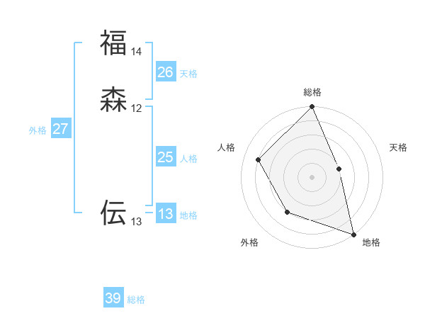 福森 伝さんの総格は39画の5点!