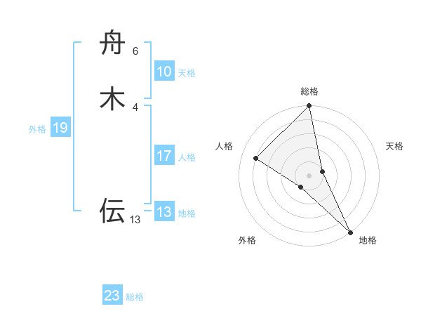 舟木 伝さんの総格は23画の5点!