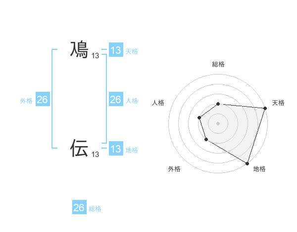 鳰 伝さんの天格は13画の5点!
