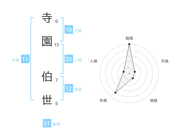寺園 伯世さんの総格は31画の5点!