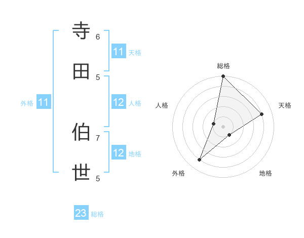寺田 伯世さんを姓名の画数から五運を鑑定