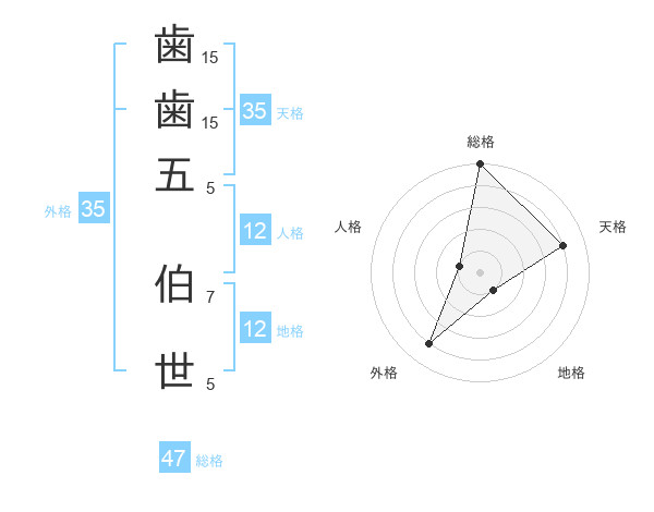 歯歯五 伯世さんを姓名の画数から五運を鑑定