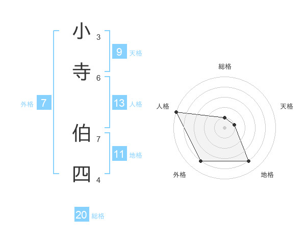 小寺 伯四さんの総格は20画の1点!