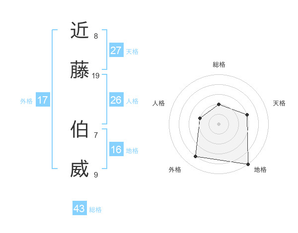 近藤 伯威さんを姓名の画数から五運を鑑定