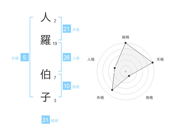 人羅 伯子さんの総格は31画の5点!