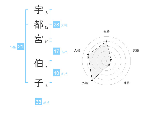 宇都宮 伯子さんを姓名の画数から五運を鑑定