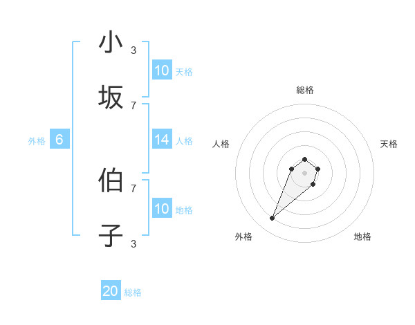 小坂 伯子さんを姓名の画数から五運を鑑定