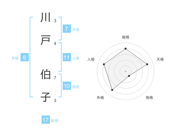 川戸 伯子さんを姓名の画数から五運を鑑定
