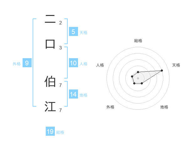 二口 伯江さんの総格は19画の1点!