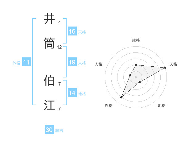 井筒 伯江さんを姓名の画数から五運を鑑定
