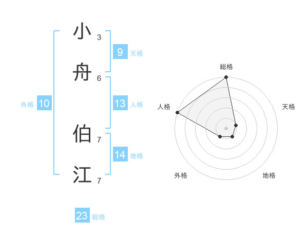 小舟 伯江さんを姓名の画数から五運を鑑定