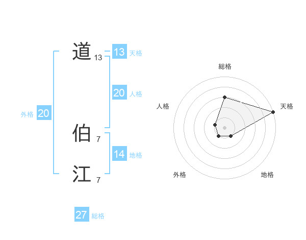 道 伯江さんの総格は27画の3点!