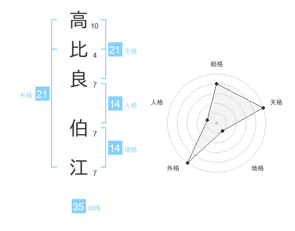 高比良 伯江さんの天格は21画の5点!