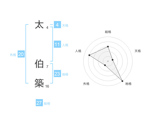 太 伯築さんの総格は27画の3点!