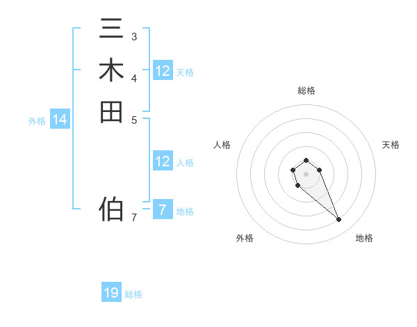 三木田 伯さんの地格は7画の4点!