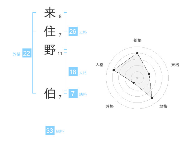 来住野 伯さんの総格は33画の4点!
