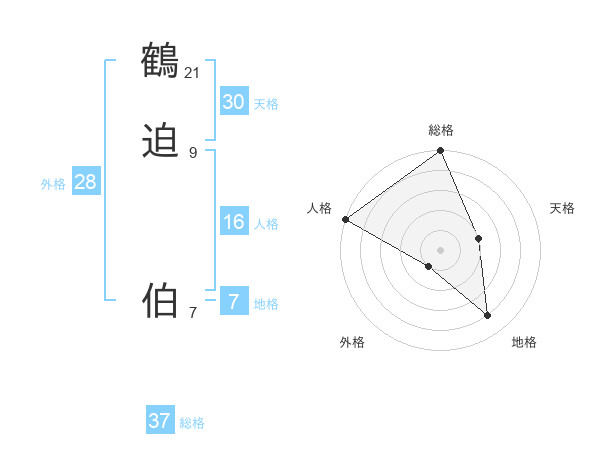 鶴迫 伯さんの総格は37画の5点!