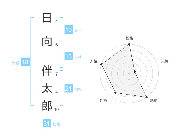 日向 伴太郎さんを姓名の画数から五運を鑑定