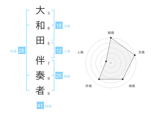 大和田 伴奏者さんの天格は16画の5点!