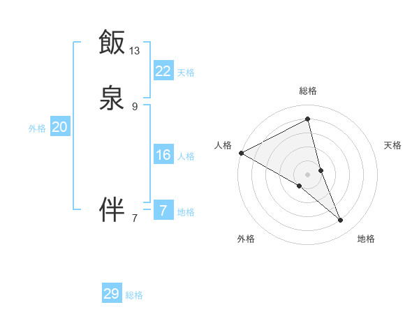 飯泉 伴さんの総格は29画の4点!