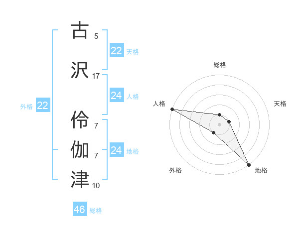 古沢 伶伽津さんを姓名の画数から五運を鑑定