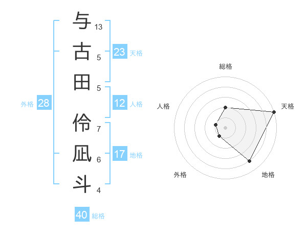 与古田 伶凪斗さんの天格は23画の5点!