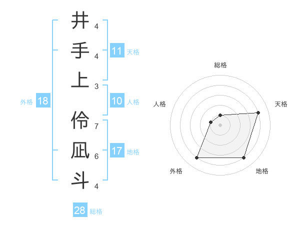 井手上 伶凪斗さんの地格は17画の4点!
