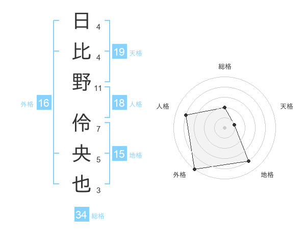 日比野 伶央也さんの天格は19画の1点!