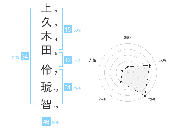 上久木田 伶琥智さんの天格は15画の4点!