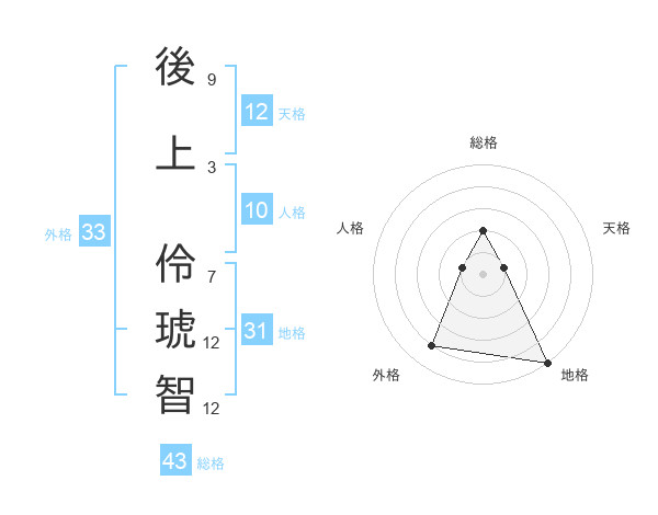 後上 伶琥智さんを姓名の画数から五運を鑑定