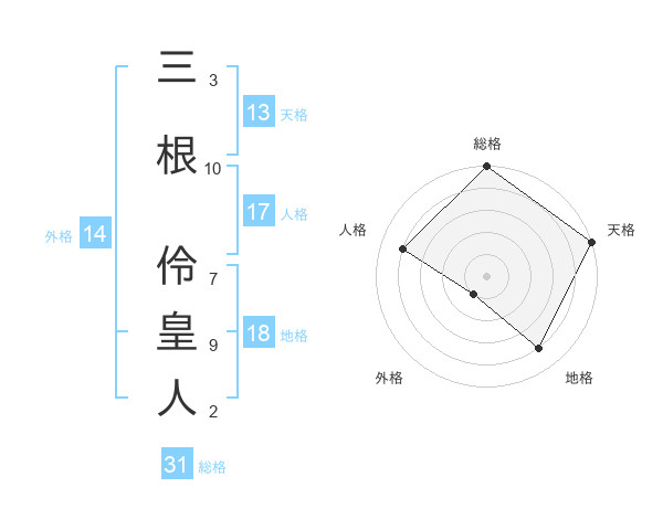 三根 伶皇人さんを姓名の画数から五運を鑑定