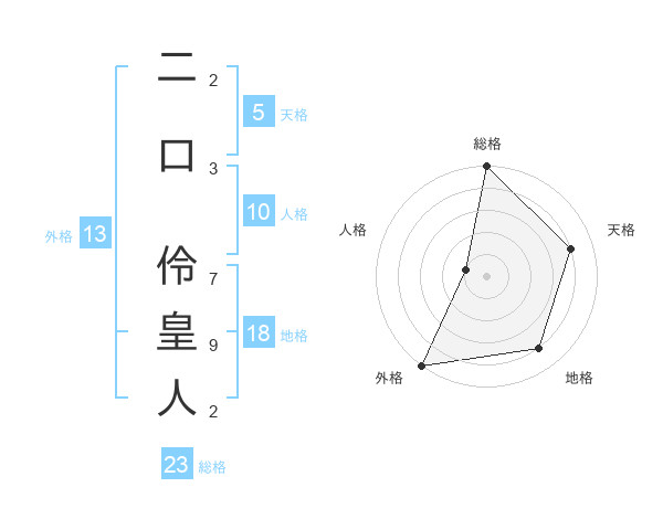 二口 伶皇人さんを姓名の画数から五運を鑑定