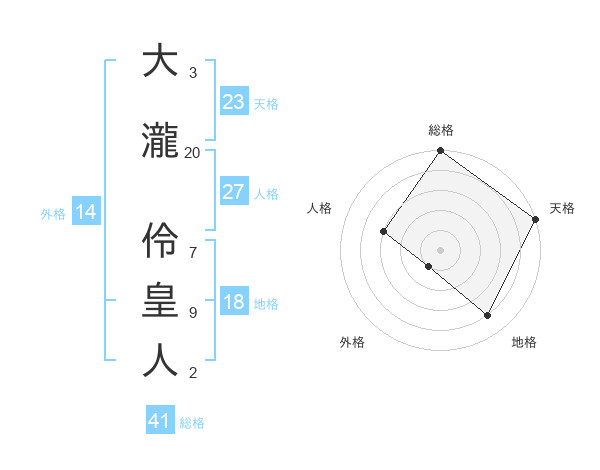 大瀧 伶皇人さんを姓名の画数から五運を鑑定