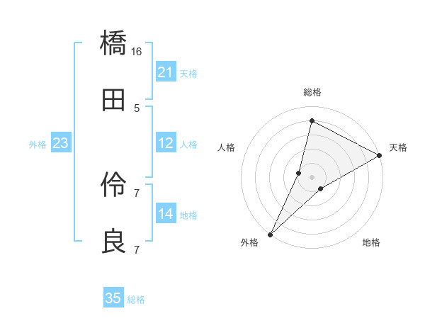 橋田 伶良さんの総格は35画の4点!