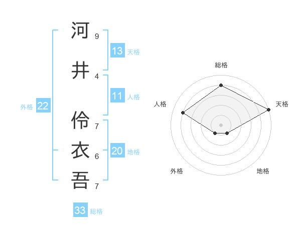 河井 伶衣吾さんを姓名の画数から五運を鑑定
