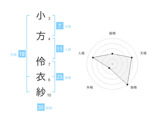 小方 伶衣紗さんの地格は23画の5点!