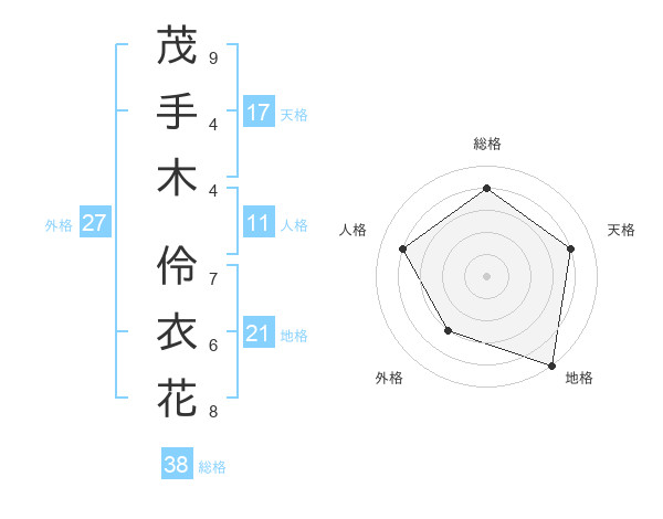 茂手木 伶衣花さんの総格は38画の4点!